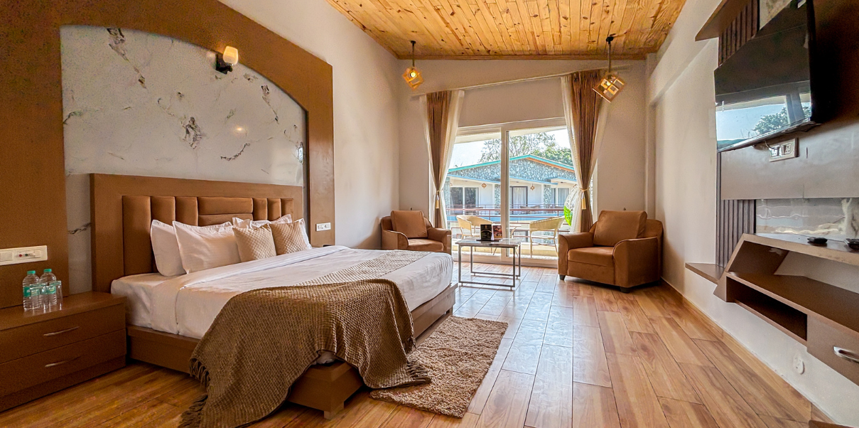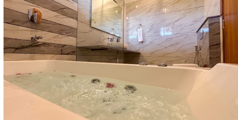 Elevate your stay with our Room with Jacuzzi, designed for guests who seek luxury, comfort, and a touch of indulgence. Set amidst the peaceful surroundings of Corbett, this room offers a perfect escape for relaxation and memorable moments. Unwind in your private jacuzzi and let the stress melt away, or relax in the plush king-size bed with serene views of nature. With elegant interiors, modern amenities, and a soothing ambiance, this room is ideal for couples and guests looking for a premium, rejuvenating experience.